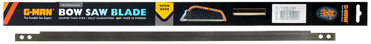 530 mm (21") pitkä kaarisahan terä hienolla hammastuksella. Soveltuu erinomaisesti lihan - niin tuoreen kuin pakastetun - leikkaamiseen. Terä on kärkikarkaistu ja sillä on vuoden takuu.