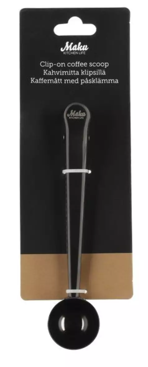 Kahvimitassa on kätevä klipsi, jolla voi sulkea kahvipaketin, jotta se pysyy tiiviisti kiinni ja kahvin aromit tallessa. Valmistettu ruostumattomasta teräksestä. Vetoisuus 14 ml. Käsinpesu.