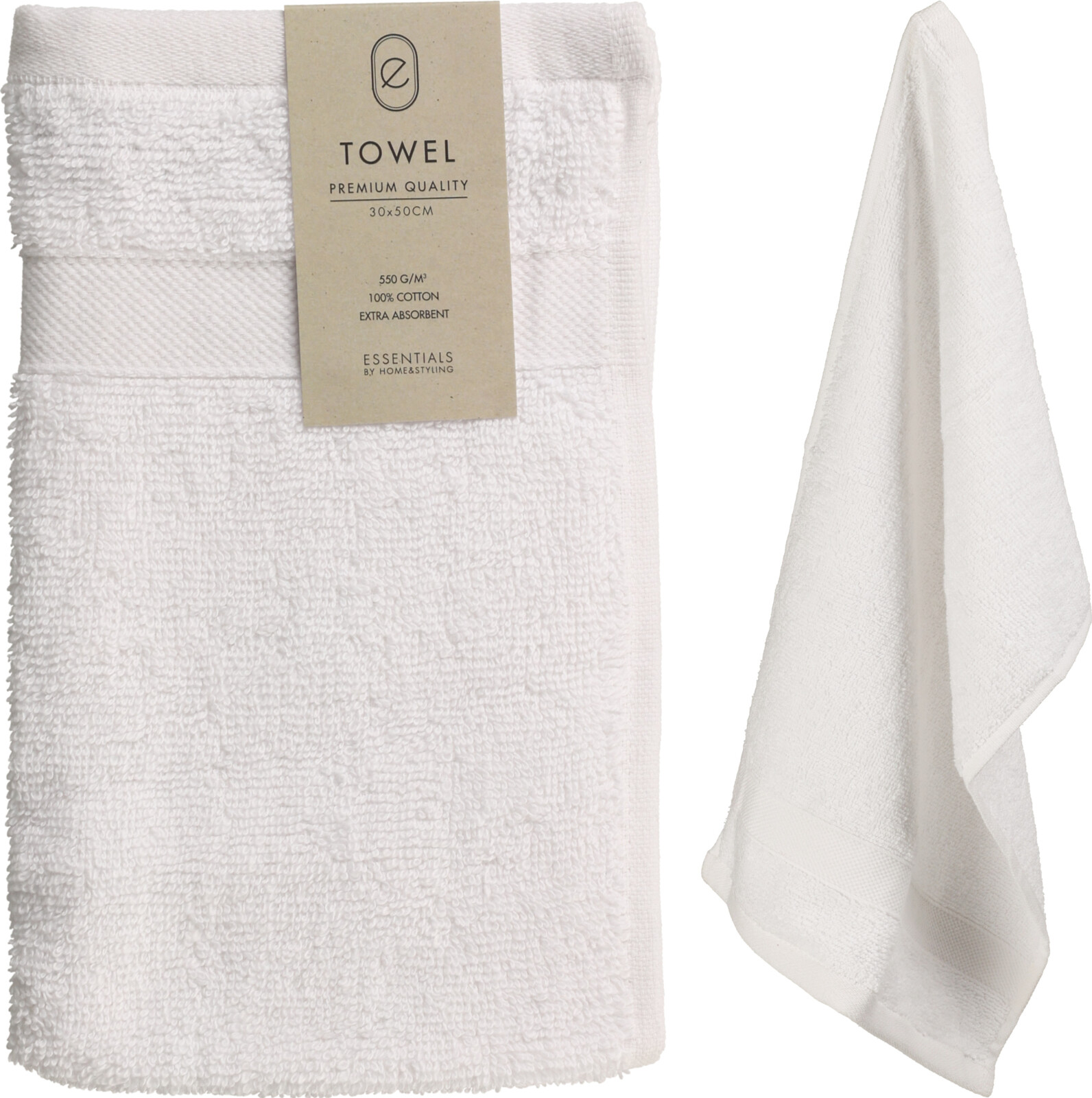 Laadukas ja imukykyinen käsipyyhe - 550g/m² - materiaali 100% puuvilla - koko 30x50cm - väri: valkoinen