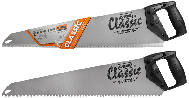 Perinteisen mallinen käsisaha 550 mm (22") pitkällä terällä. Sahassa on 5 karkaistua hammasta/tuuma ja sen kahva on ergonomisesti muotoiltu. Sahan terässä on ripustusreikä ja muovinen teräsuojus.