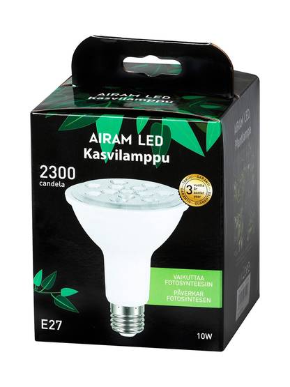 Airamin led-kasvilamppu on erikoislamppu, jonka säteily on sovitettu juuri kasvin tarvitsemille aallonpituuksille.