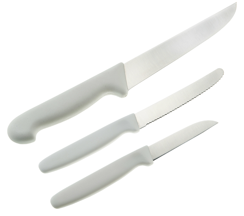 - setissä: keittiöveitsi 16 cm, yleisveitsi 11 cm ja juuresveitsi 8 cm