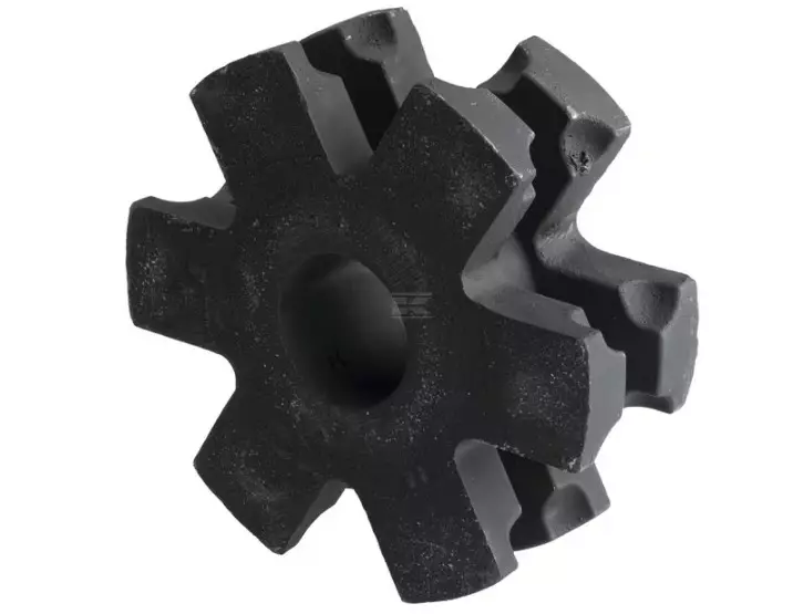 Pohjakuljettimen vetopyörä valurautaa - hampaiden määrä: 6 - ulkohalkaisija: 205 mm - leveys: 67 mm - porausläpimitta: 45 mm - versio: avoin