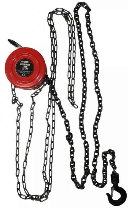 max.nostokapasiteetti 1 ton - max.nostomatka 2,5 m - koukkujen välinen minimietäisyys 320 mm - maksimikuorman nostoon tarvittava voima 330N - Ketjun paksuus 6 mm - Paino 9 kg - CE-hyväksytty Mitat:... Lue lisää
