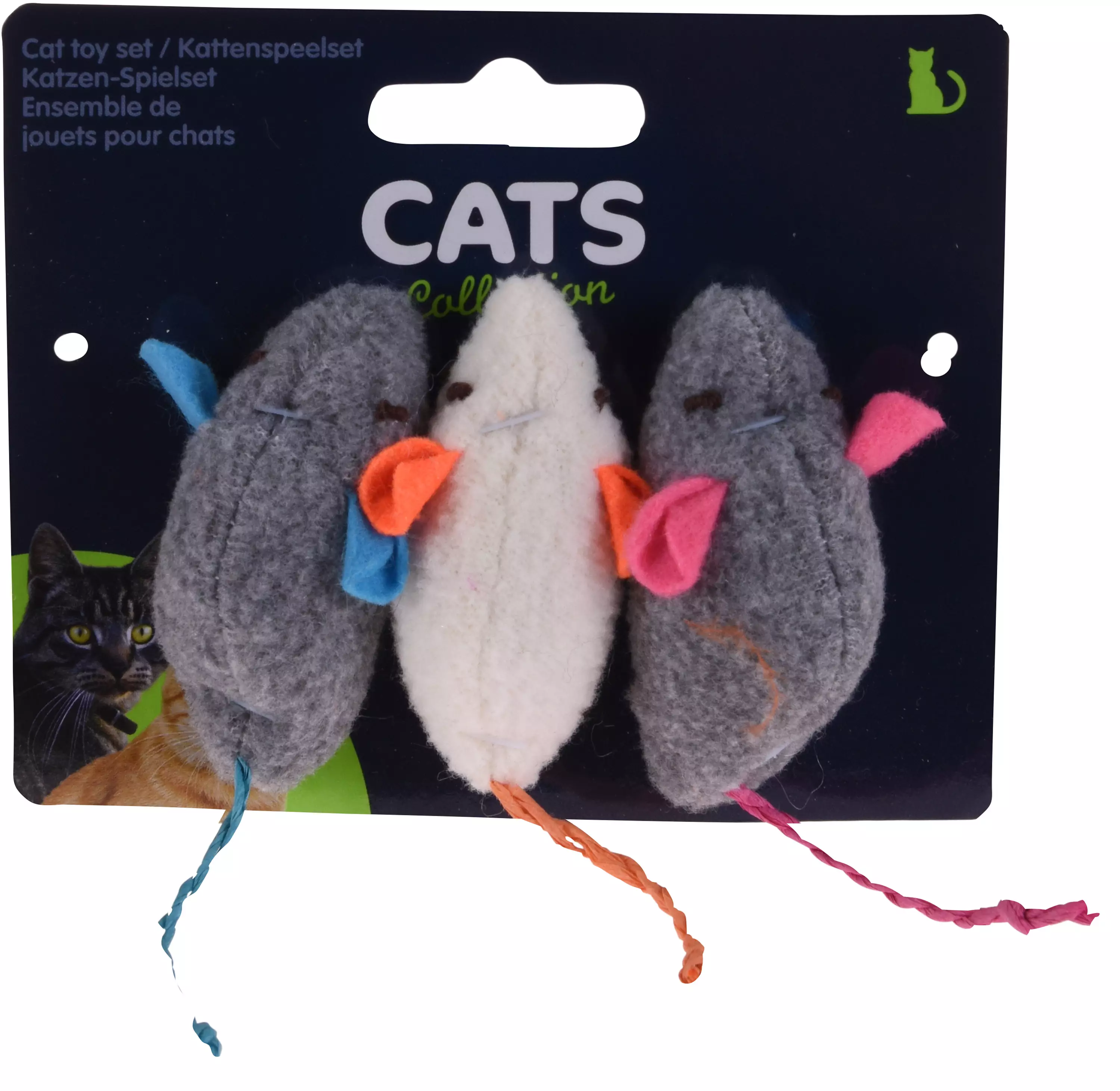 3 pehmeää pientä hiirtä paperinaruhännällä