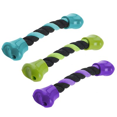 koiran köysilelu - pituus 24 cm - värit: turkoosi, lime ja violetti