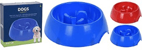 Ahmimisen estokuppi - muotoilunsa ansiosta hillitsee koiran hotkimista - halkaisija 21 cm - saatavana värit: sininen ja punainen