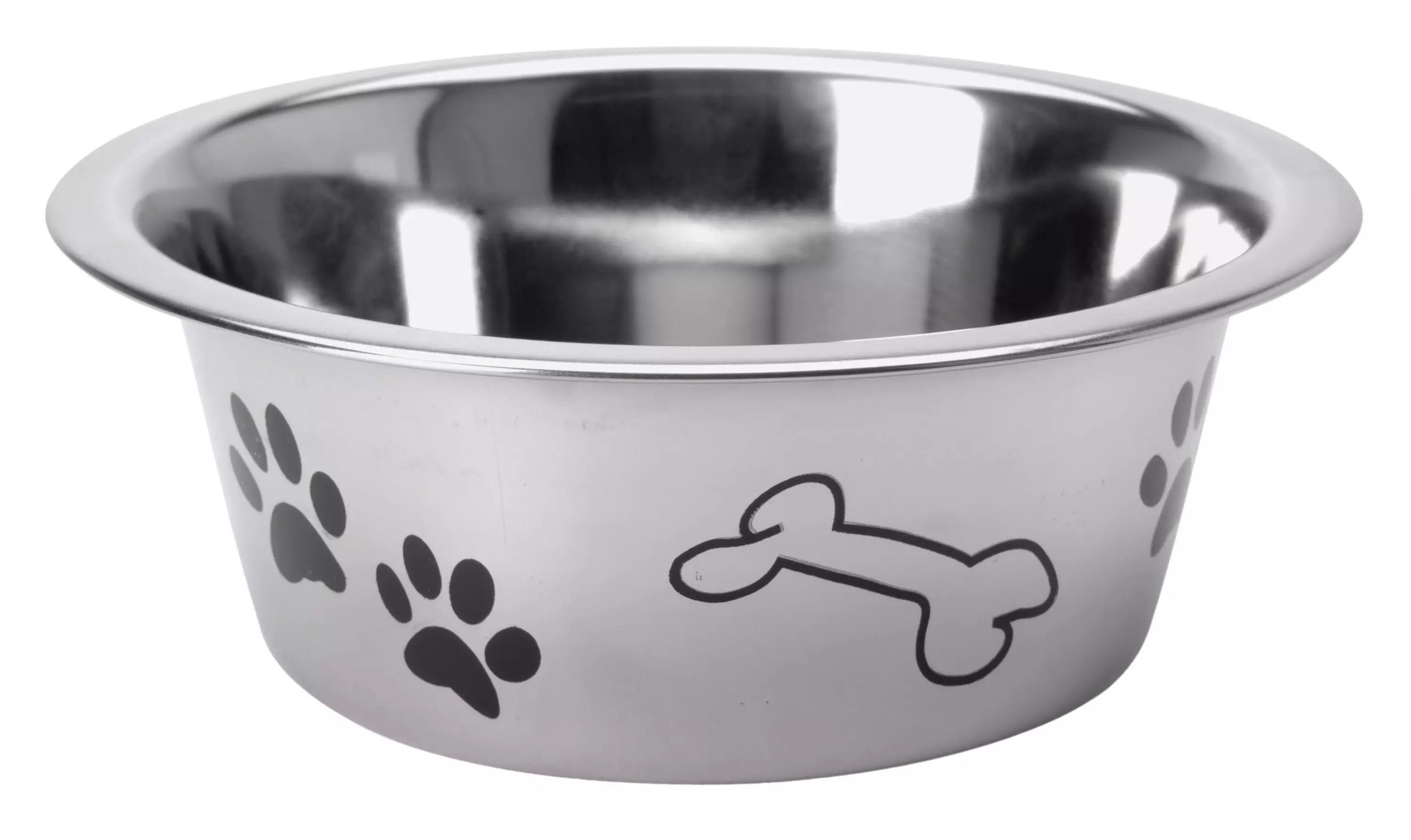 teräksinen koirankuppi tassu-kuvoilla - vetoisuus 0,7 litraa - mitat: pohjan halkaisija 11 cm, yläosan ulkohalkaisija 16,5 cm, yläosan sisähalkaisija 14 cm, korkeus 6,5 cm... Lue lisää