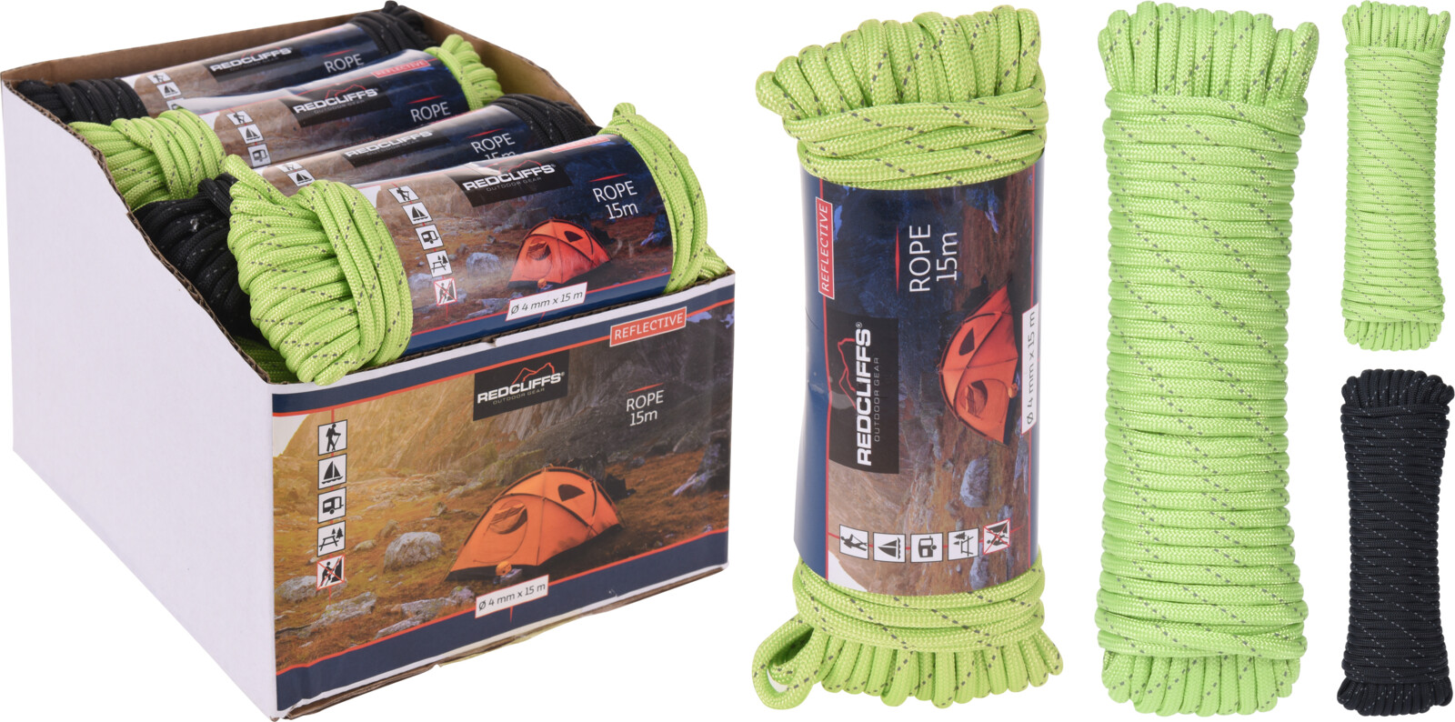 Heijastava köysi mustana tai huomiokeltaisena - vahvuus 4 mm - pituus 15 m