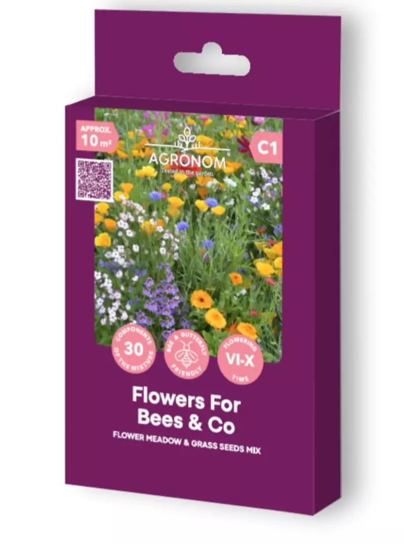 Kukkiva villiniitty Agronom Flowers for Bees and co, jolla luot helposti oman ketomaisen pölyttäjiä houkuttelevan kukkaniityn.