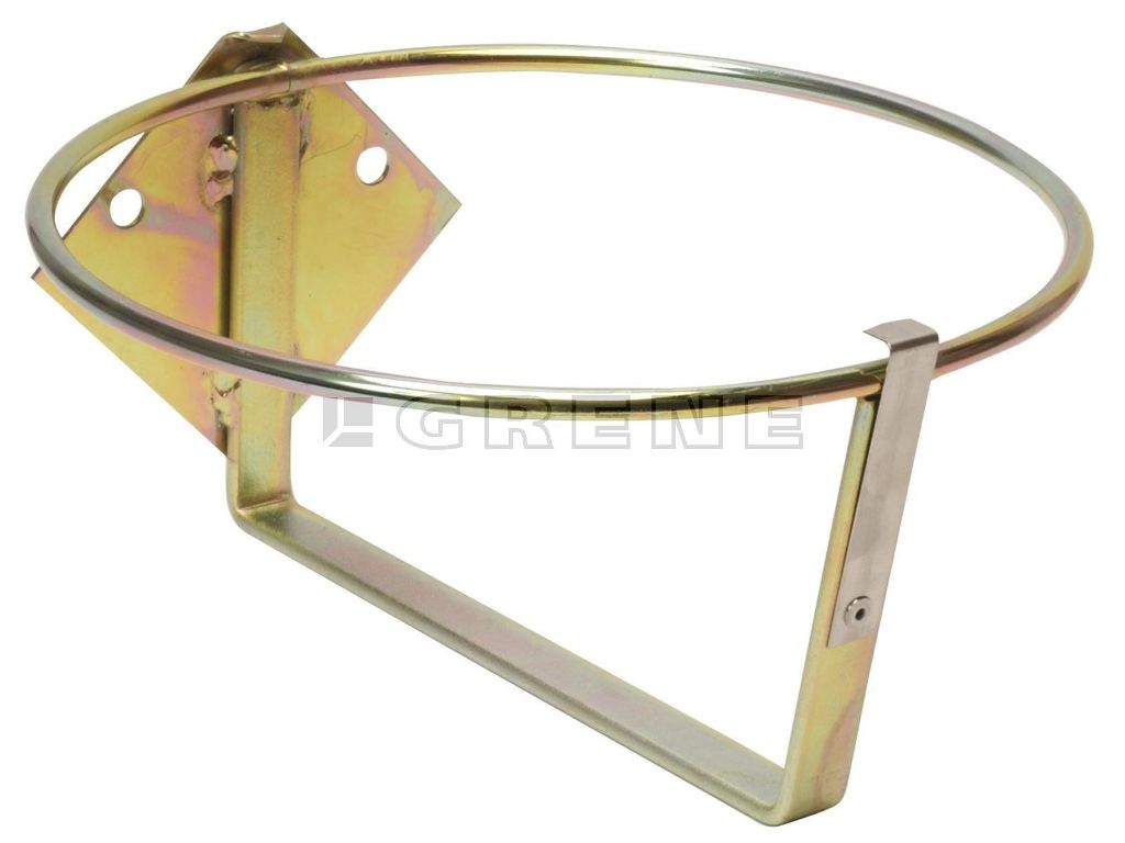Galvanoitu pidike 4 l rehukulholle jousilukolla.