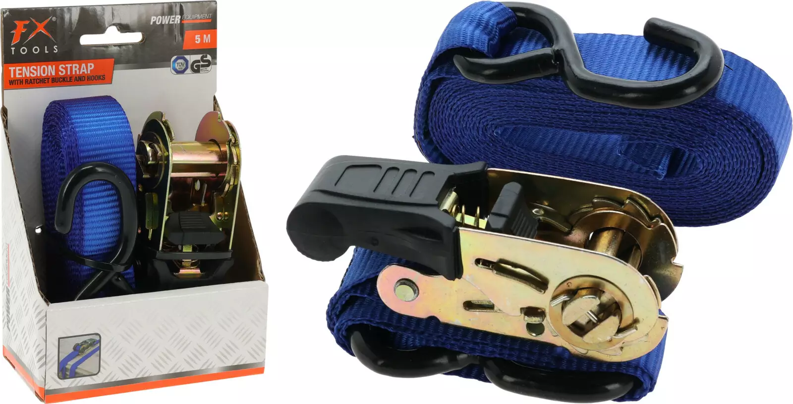 Kuormaliina räikällä - pituus 5 m - liinan leveys 2,7 mm - muovipäällysteinen metallikoukku