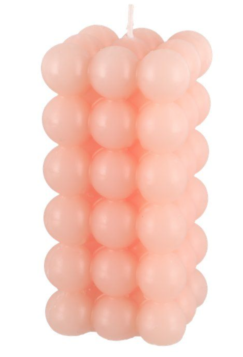 Supersuosittu ja ihana kuplakynttilä ihastuttaa iltojen hämärtyessä. - vaaleanpunainen - paloaika n. 30 h - mitat 6 x 6 x 12 cm - paino 290 g - steariinia