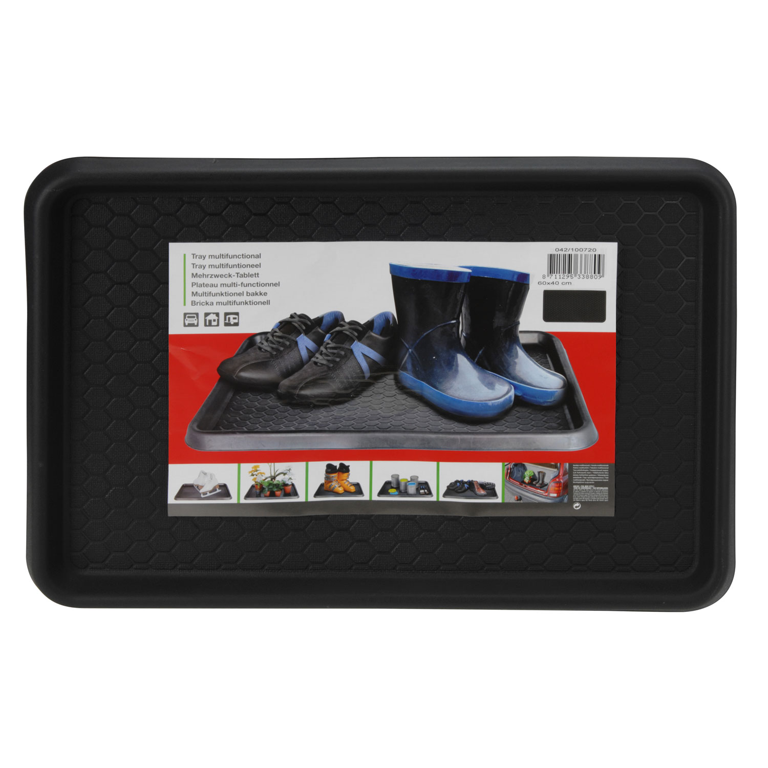 Monikäyttöinen kaukalo kengille, luistimille, öljypurkeille, huonekasveille, auton peräkonttiin tarvikkeille, maalipurkeille yms. - pohjassa uritus - koko: 60x40 cm - reunan korkeus noin 2 cm -... Lue lisää