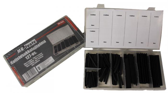 127-osainen kutistesukkalajitelma - kätevässä läpinäkyvässä muovilaatikossa