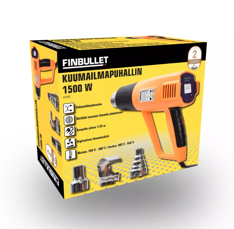 Tämä kuumailmapistooli tarjoaa monipuoliset ominaisuudet ja tarkan lämpötilansäädön eri työtehtäviin. Varustettu LCD-näytöllä ja säädettävällä lämmönhallinnalla, pistooli soveltuu moniin käyttötarkoituksiin. Kaksoislämpövastus takaa tehokkaan lämmön ja ilmanvirtauksen hallinnan. Mukana toimitetaan neljä erilaista suutinta, mikä lisää laitteen käyttömahdollisuuksia.