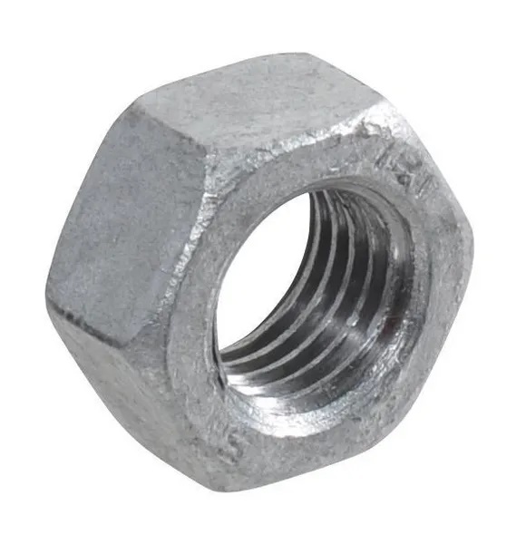 Kuumasinkitty kuusiomutteri metrisellä kierteellä. Standardien DIN 934 sekä ISO 4032 ja 4033 mukainen.
