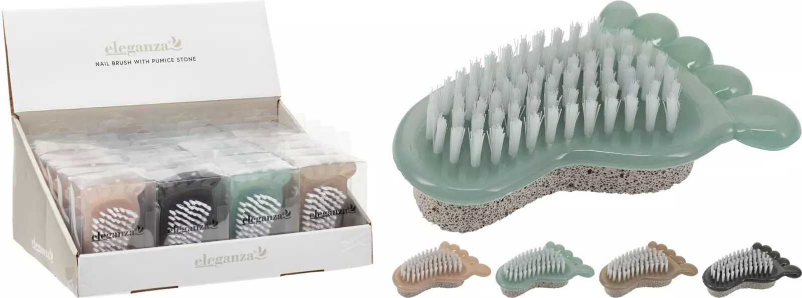 - jalkapohjan muotoinen kynsiharja, jossa toisella puolella hohkakivi kovettumien poistoon