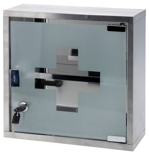 lääkekaappi lasiovella - 2 hyllytasoa - lukittava, 2 avainta - mitat: 31x31x13 cm - paino 1,9 kg