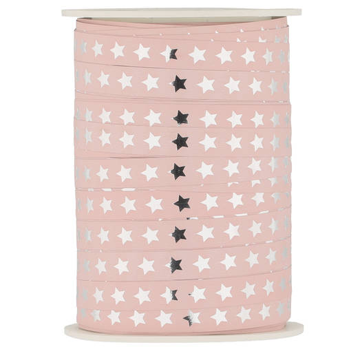 Vaalean roosa pakettinauha hopeanvärisillä tähdillä - 10 mm x 100 m