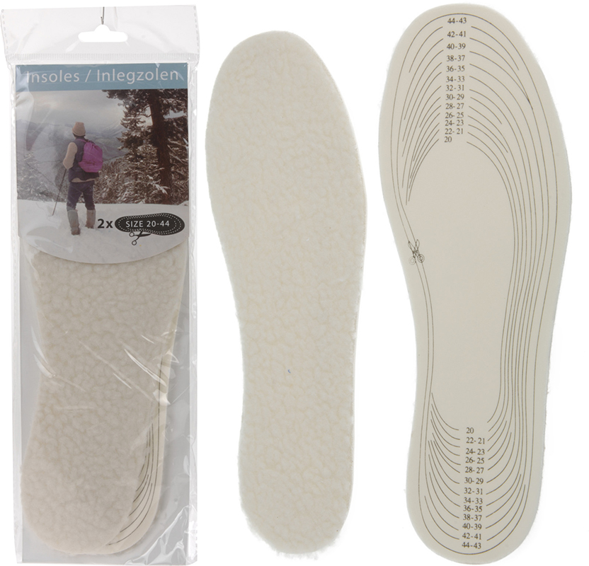 lämpimät kengänpohjalliset - yksi koko, jonka alapuolelle painettu eri kengännumeroita vastaavat merkinnät oikeaan kokoon leikkaamista varten