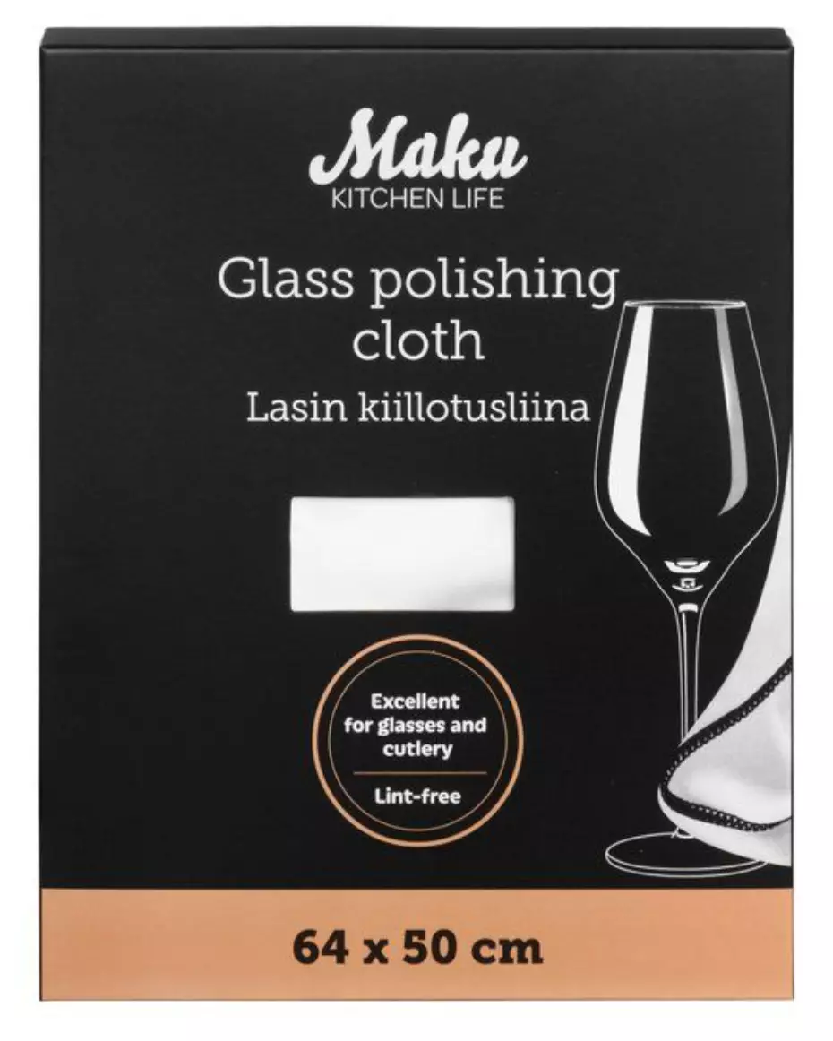 Pehmeä ja taipuisa mikrokuituliina poistaa kalkkitahrat tiskauksen jäljiltä. Käytetään kuivana lasien kiillottamiseen. Erinomainen laseille ja ruokailuvälineille. Nukkaamaton. Pesu 40 asteessa.
