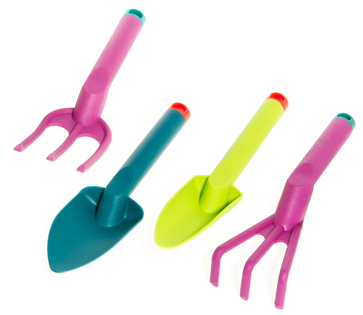värikäs 4-osainen puutarhatyökalusetti - muovia