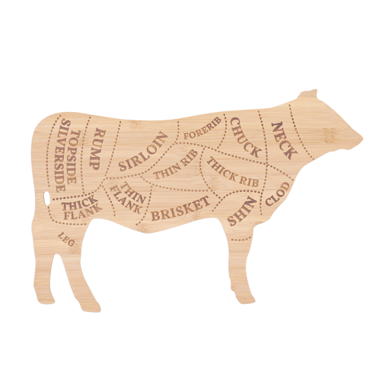 bambupuinen (FSC 100%) lehmän muotoinen leikkuulauta - 49,5 x 31 cm - paksuus 1.1 cm - paino noin 700 g