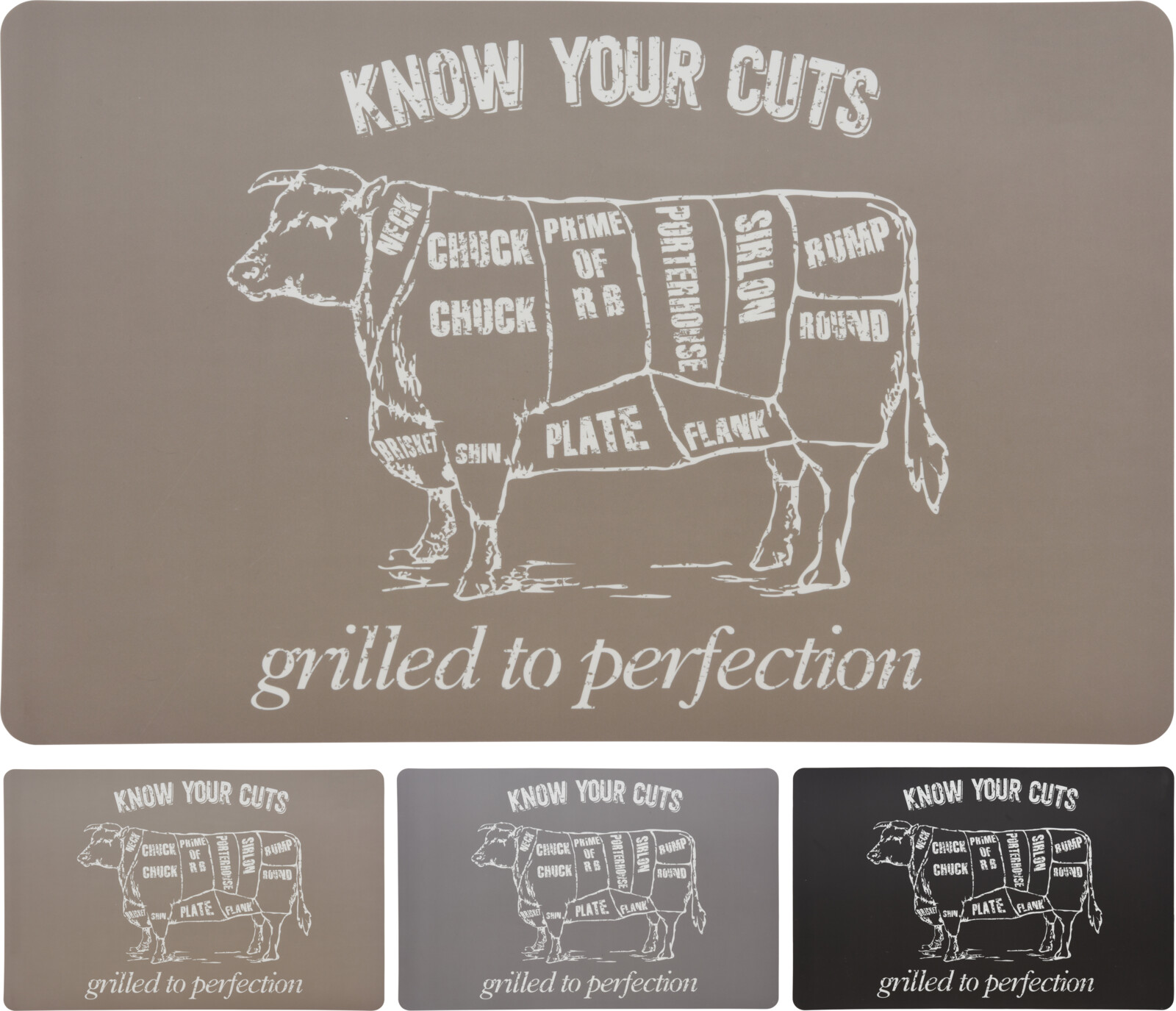 lehmä-aiheinen tabletti muovia - koko: 43x28 cm - väri: beige, harmaa ja musta