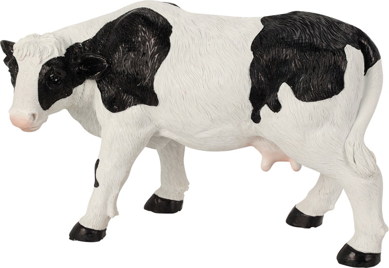 Seisova lehmäpatsas - materiaali: polyresin - suositellaan siirtoa sisätiloihin talven ajaksi - koko: 21x17 cm