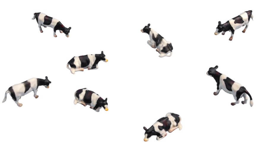 Kids Globe-sarjan pieniä makaavia ja seisovia friisiläislehmiä - 8 kpl/pkt - lehmän koko n. 4 x 1 x 2 cm