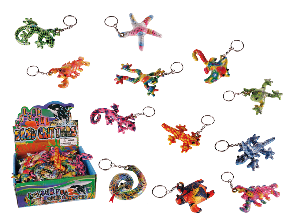 - hiekkatäytteiset liskoaiheiset avaimenperät