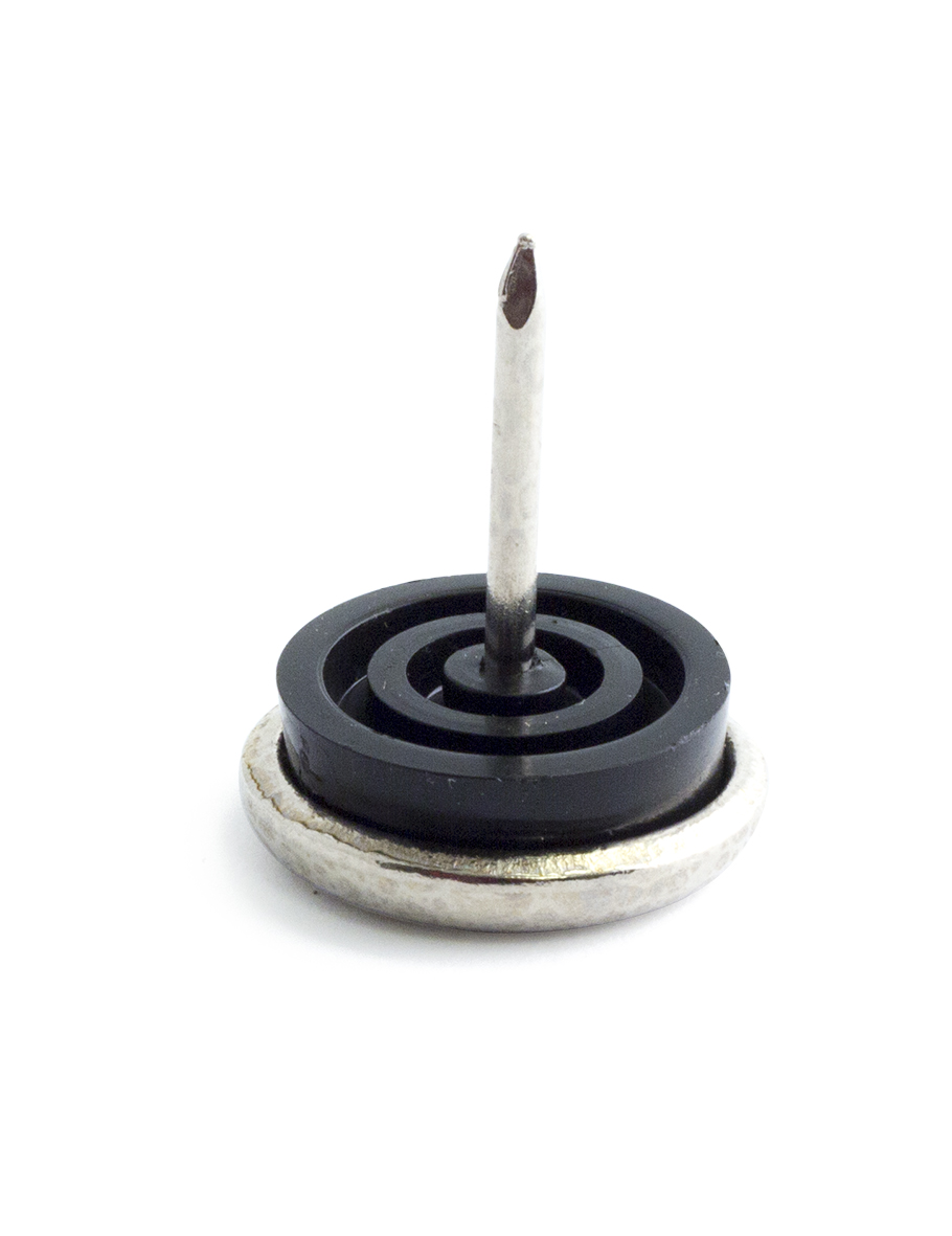 Teräksinen liukunasta, nailonvaimennin ja naulakiinnitys. Halkaisija 22 mm. Pakkauksessa 4 kpl.