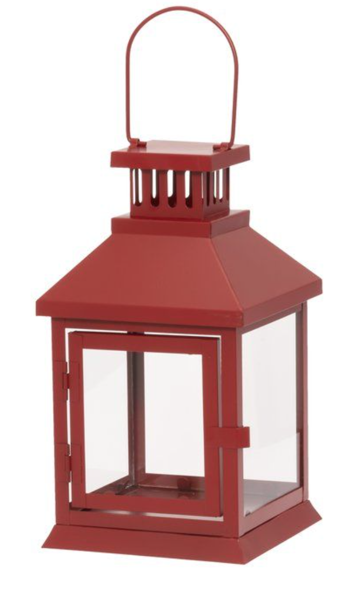 perinteinen punainen kynttilälyhty - leveys14 cm - syvyys14 cm - korkeus26 cm - paino0,76 kg - materiaali: rauta, lasi