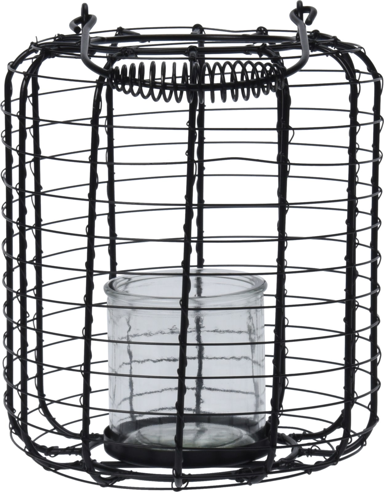 Musta metalliverkkolyhty - lyhdyn mitat: halk. 18,5 x kork. 24cm - materiaalit: metalli, lasinen kynttiläkuppi sisällä