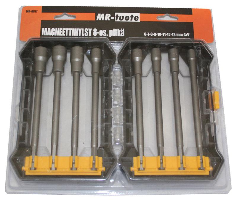 Magneettihylsy 8-os. pitkä - 6 - 7 - 8 -9 -10 - 11 - 12 - 13 mm CrV - pituus 150 mm