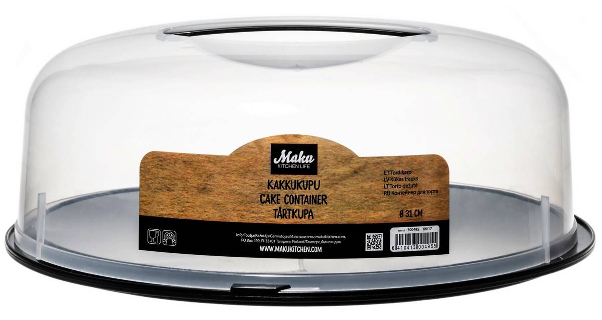 Kupu alustalla kakuille ja leivonnaisille - konepesunkestävä - halkaisija 32 cm - korkeus 12 cm - paino 0,36 kg