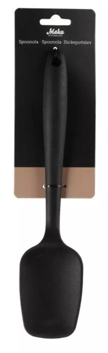 Ainutlaatuinen muoto yhdistää lusikan ja lastan toiminnallisuudet. Lämmönkesto 220 astetta. Konepesun kestävä. Leveys28 cm Syvyys6 cm Korkeus1,1 cm Paino0,1 kg Värimusta Materiaalisilikoni... Lue lisää