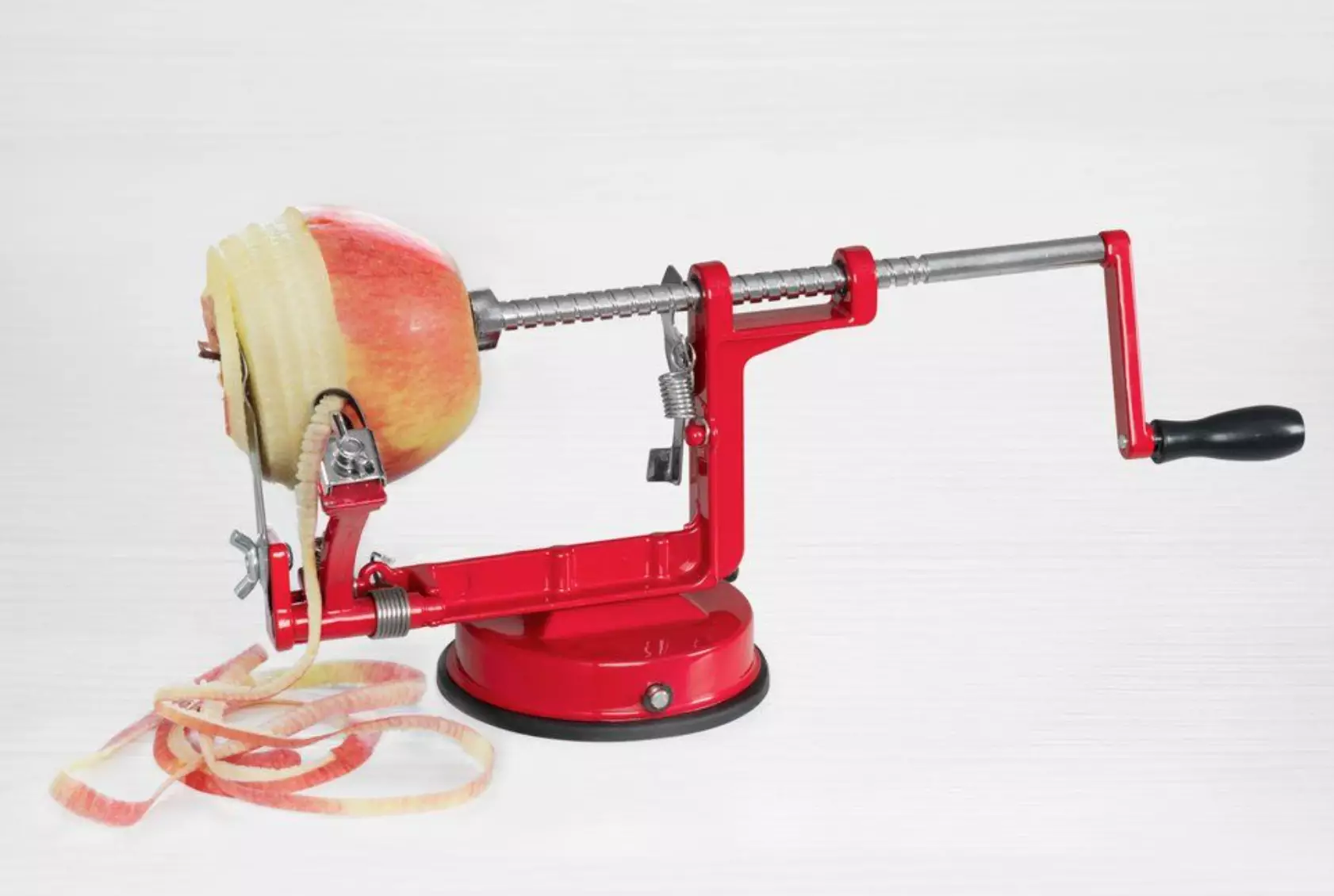 Omenasorvilla omenoista kuoret ja kodat pois kätevästi. Sorvi myös viipaloi omenan niin haluttaessa, erinomainen apuväline jokaiselle omenoista pitävälle jauhopeukalolle ja omenapuun omistajille. Sorvin pohjassa on voimakas imukuppi, jolla se saadaan tukevasti esim. keittiön pöytään kiinni.