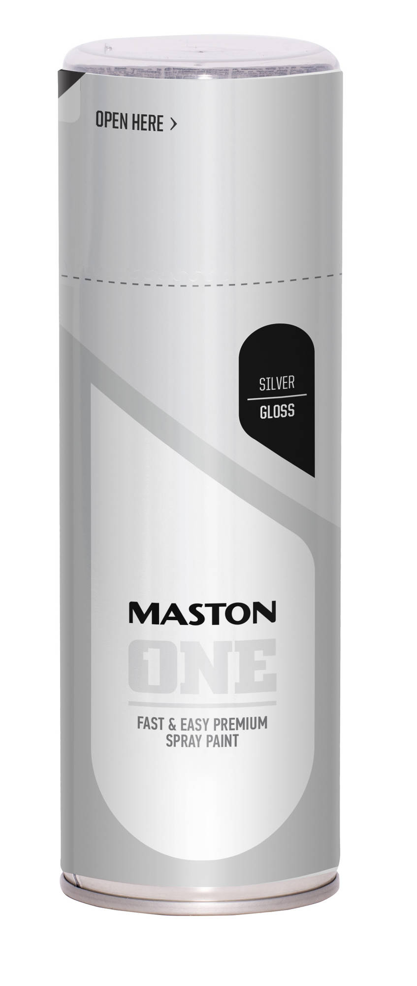 Maston One spraymaali tekee maalauksesta helppoa ja nopeaa. Maston One soveltuu käytännössä kaikille pinnoille, sisälle ja ulos. Värit perustuvat patentoituun teknologiaan sen korkean teknologian ominaisuuksia ovat turbiini-venttiili, joka sekoittaa maalin tehokkaasti ponneaineeseen, kuten ammattitason maaliruiskuissa. Se sisältää 20 % vähemmän ponneaineita, 25 % enemmän sideaineita ja 4 kertaa enemmän väripigmenttejä kuin tavalliset spraymaalit. Peitto on uskomattomat 3m2 (pohjamaalattu metallipinta). Väri: Hopea.