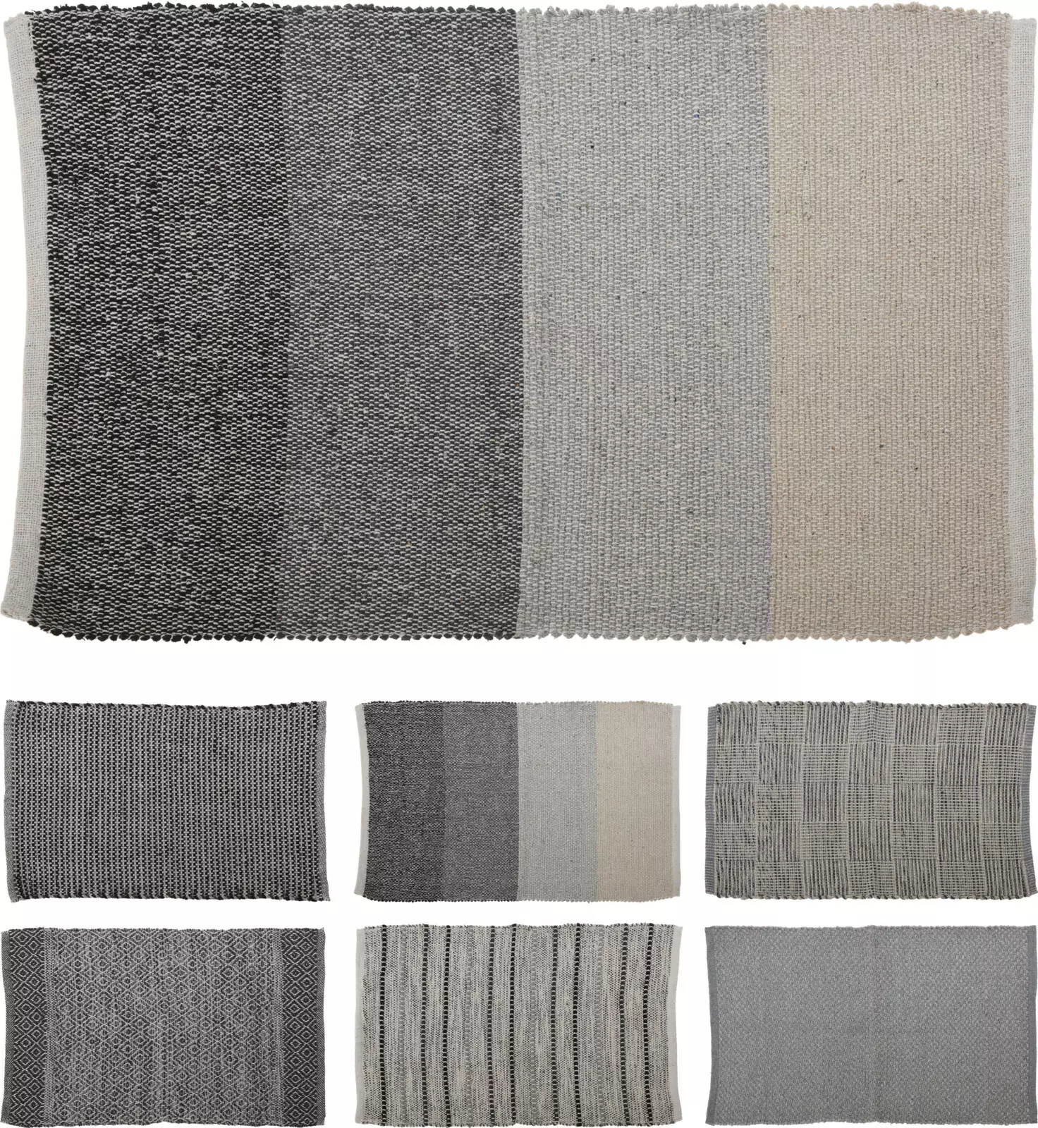 - pieni harmaasävyinen räsymatto