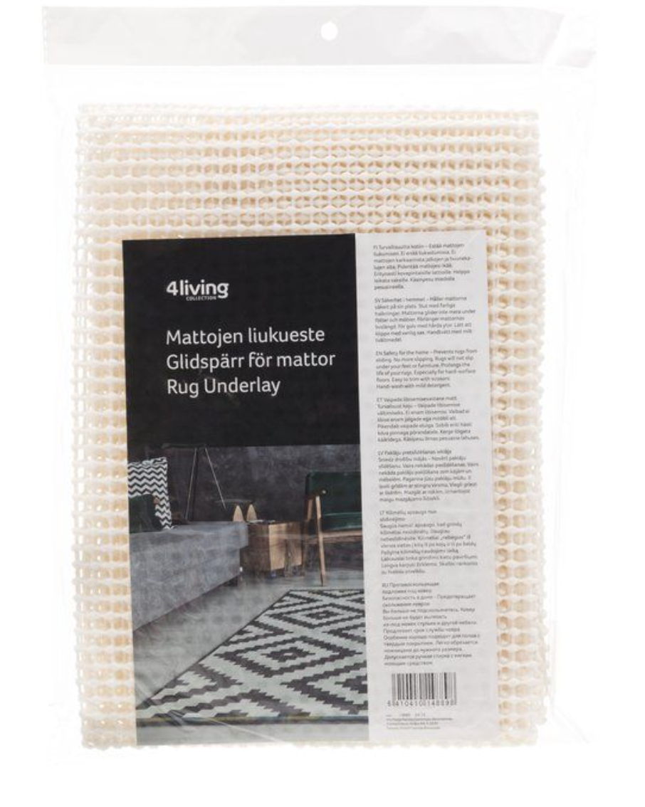 Leikattava liukuesteverkko auttaa pitämään matot suorassa ja paikoillaan. Ristikkorakenteen ansiosta se on helppo leikata mihin tahansa kokoon ja muotoon. Koko 150 x 220 cm.