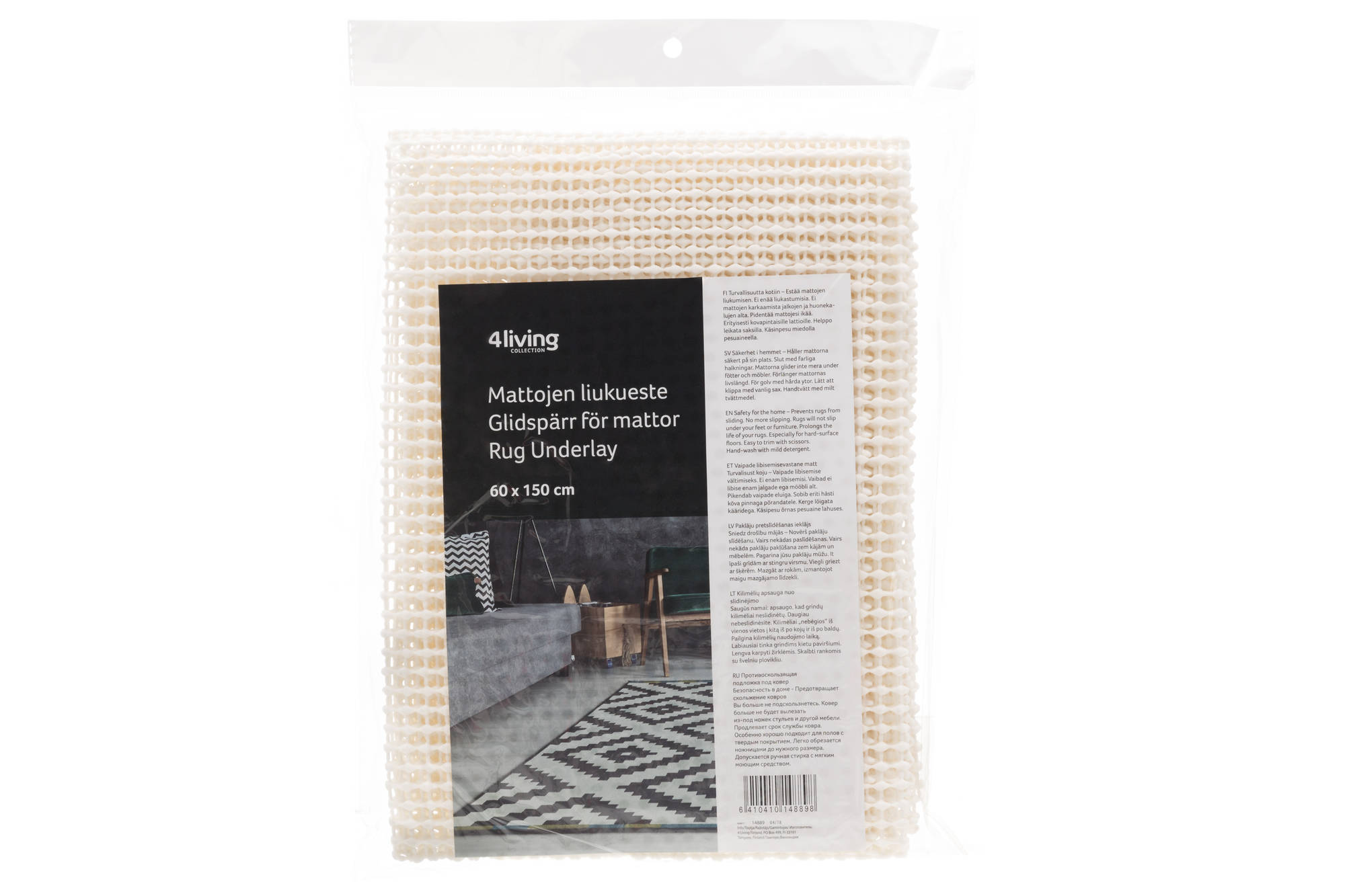 Verkkomainen liukueste mattojen alle. Helppo leikata sopivan kokoiseksi. Sopii myös hyllyjen suojaksi. - koko: 60 x 150 x 0,5 cm - paino: 180 g - materiaali: 30 % polyesteri, 70 % vinyyli... Lue lisää