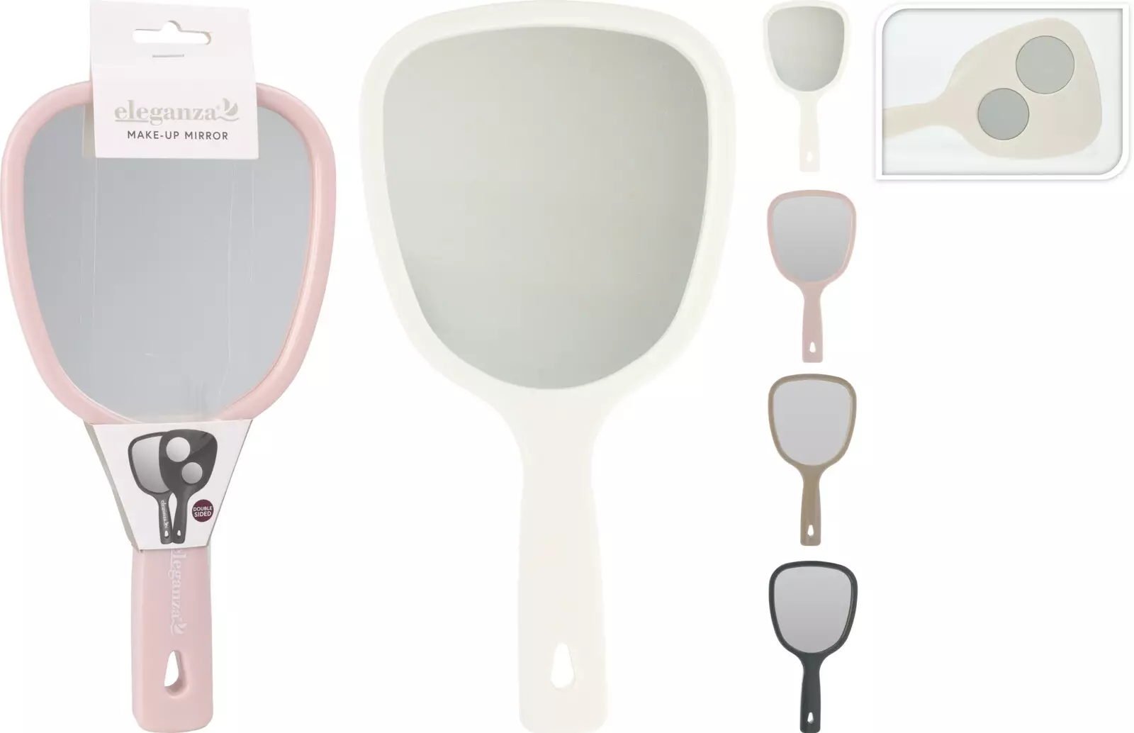 käsipeili, jonka toisella puolella kaksi 5x -suurentavaa peiliä - saatavana eri värejä (kuvassa), joista tilatessasi saat sattumanvaraisesti jonkin (lajitelmatuote)