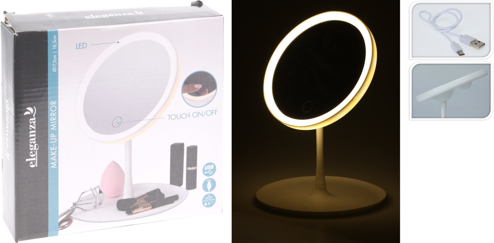 usb-ladattava valaistu peili, pöytämalli - jalustan halkaisija: 185mm - peiliosan halkaisija: 175mm - korkeus: 270mm