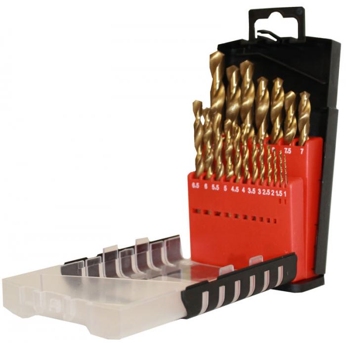 Metalliporasarja HSS 4241 Titanium 19-os. 1-10 mm - Sisältö: 1-1.5-2-2.5-3-3.5-4-4.5-5-5.5-6-6.5-7-7.5-8-8.5-9-9.5-10 mm - HSS 4241 Titanium