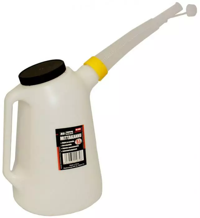 5 litraa - öljylle ja nesteille - kierrekorkilla - taipuisa annostelunokka - materiaali polyeteeni