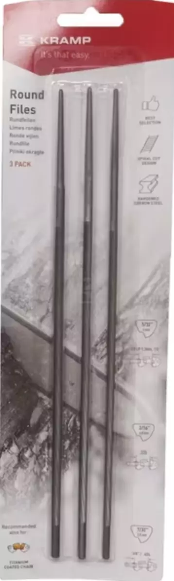 - pakkauksessa 3 kpl pyöreää moottorisahaviilaa: 4 mm, 4,8 mm ja 5,0 mm