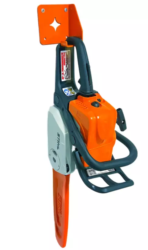 Kätevä seinään kiinnitettävä teline moottorisahalle. Tarjoaa turvallisen ja kätevän säilytysratkaisun.