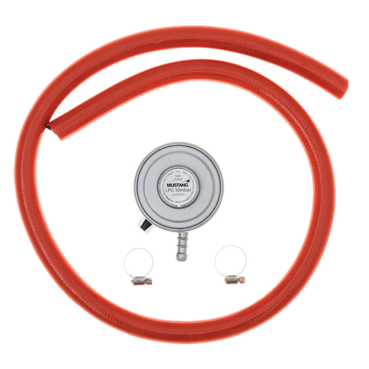 Paineensäädin 30mbar, sis. EFV turvaventtiilin, joka rajoittaa kaasunvirtausta jos kaasuletku katkeaa tai irtoaa. Läpivirtaus 1,5 kg/h. Letku 1m/10 mm, -30 °C. Letkunkiristimet 2 kpl. Standardin... Lue lisää